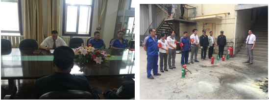 10:30時安全員和義務(wù)消防隊員們開始進(jìn)行現(xiàn)場滅火演練,通過演習(xí),大家掌握了滅火器和消防栓的使用方法。