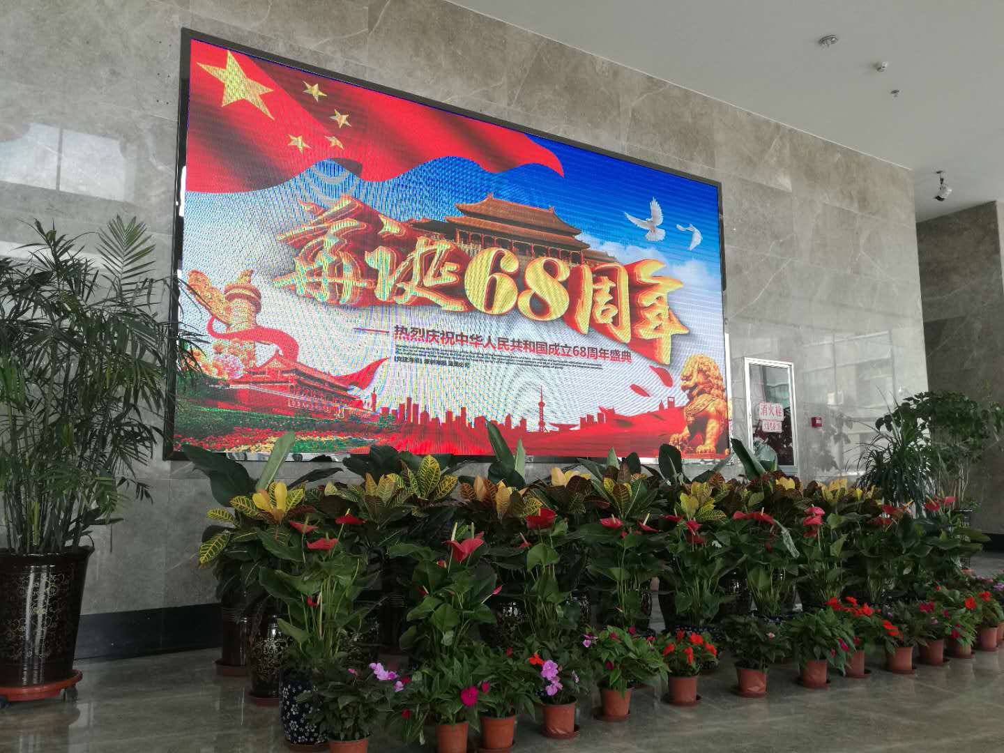 (朝物開投 訊 戴韻禮/文攝)為慶祝建國68周年,朝陽物流開發(fā)投資有限公司開展"喜迎國慶,歡度中秋"的準備工作。我公司在物產(chǎn)大廈門前紛紛懸掛起國旗和大紅燈籠,營造喜慶祥和的節(jié)日氣氛。在樓內(nèi)大廳擺放鮮花,迎接國慶節(jié)的到來。把黨的關(guān)心和關(guān)懷傳達到每一名員工,讓全體員工都能感受到公司"大家庭"的溫暖。也為喜迎黨的十九大勝利召開做好前期宣傳工作。