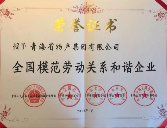 由青海省人力資源和社會保障廳、青海省總工會、青海省企業(yè)聯(lián)合會/企業(yè)家協(xié)會、青海省工商業(yè)聯(lián)合會共同推薦申報,青海省物產(chǎn)集團有限公司、青?;ブ囡乒煞萦邢薰?、正平路橋建設股份有限公司榮獲全國模范勞動關系和諧企業(yè)光榮稱號,西寧經(jīng)濟技術開發(fā)區(qū)東川工業(yè)園區(qū)榮獲全國模范勞動關系和諧工業(yè)園區(qū)光榮稱號,受到了國家人力資源和社會保障部、中華全國總工會、中國企聯(lián)、全國工商聯(lián)的隆重表彰。