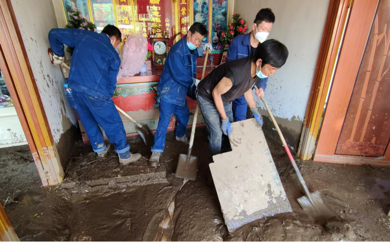 嚴峻的災情牽動著物產(chǎn)人的心。公司黨委聞“汛”而動,按照大通縣政府、北川管委會安排,及時組建抗洪救災“黨員先鋒突擊隊”“團員青年先鋒隊”,于8月20日、21日奔赴受災最嚴重的青林鄉(xiāng)災區(qū),搶險救災。