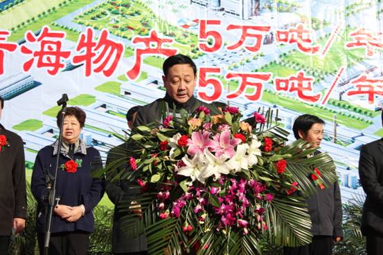 此次投產(chǎn)慶典儀式由青海省國(guó)資委副主任毛占彪主持,青海省委常委、副省長(zhǎng)駱玉林、青海省人大副主任桑杰、青海省經(jīng)濟(jì)委員會(huì)主任、青海省政府國(guó)資委副主任吳海昆、西寧市政府副市長(zhǎng)許國(guó)成、中共大通縣縣委書(shū)記吳海、大通縣人民政府縣長(zhǎng)韓生才、青海省物產(chǎn)集團(tuán)總公司總經(jīng)理、青海物產(chǎn)工業(yè)投資有限公司董事長(zhǎng)王玉輝、青海省物產(chǎn)集團(tuán)總公司黨委書(shū)記白家林以及省、市、縣有關(guān)部門的負(fù)責(zé)同志參加了投產(chǎn)慶典儀式。